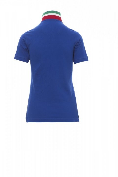 Polo femme NATION LADY coupe cintrée en 100% coton piqué 210 g/m². Manches courtes avec patte à 5 boutons nacrés ton sur ton. Col et finitions avec détails contrastés inspirés des couleurs du drapeau, visibles col relevé. Fentes latérales et finitions renforcées pour plus de tenue. Idéal pour une personnalisation en broderie, DTF ou sérigraphie.